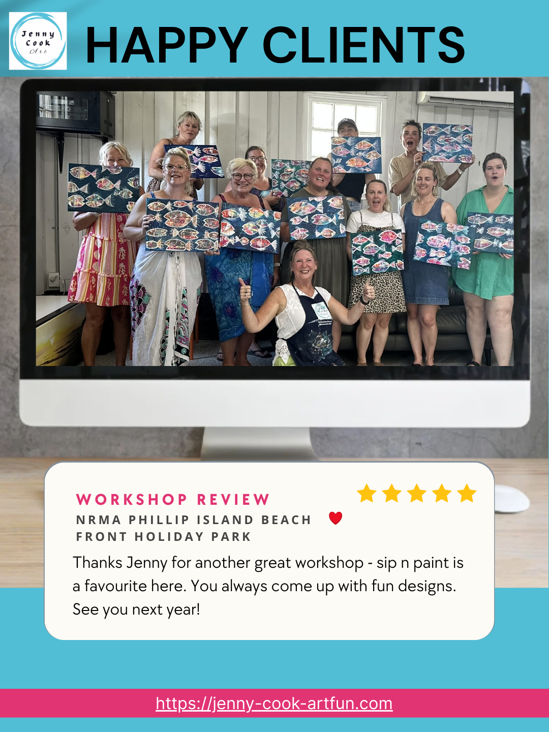 All of my workshops are backed by years of experience in arts education, community engagement, and a passion for making creativity accessible to everyone. I have hosted countless painting sessions for corporate teams, organisations, community groups, and art lovers of all levels - always with a focus on fun, connection, and creative confidence. My workshops are a space where everyone feels welcome, supported, and inspired to create something they’re proud of (and have a great time doing it!).
