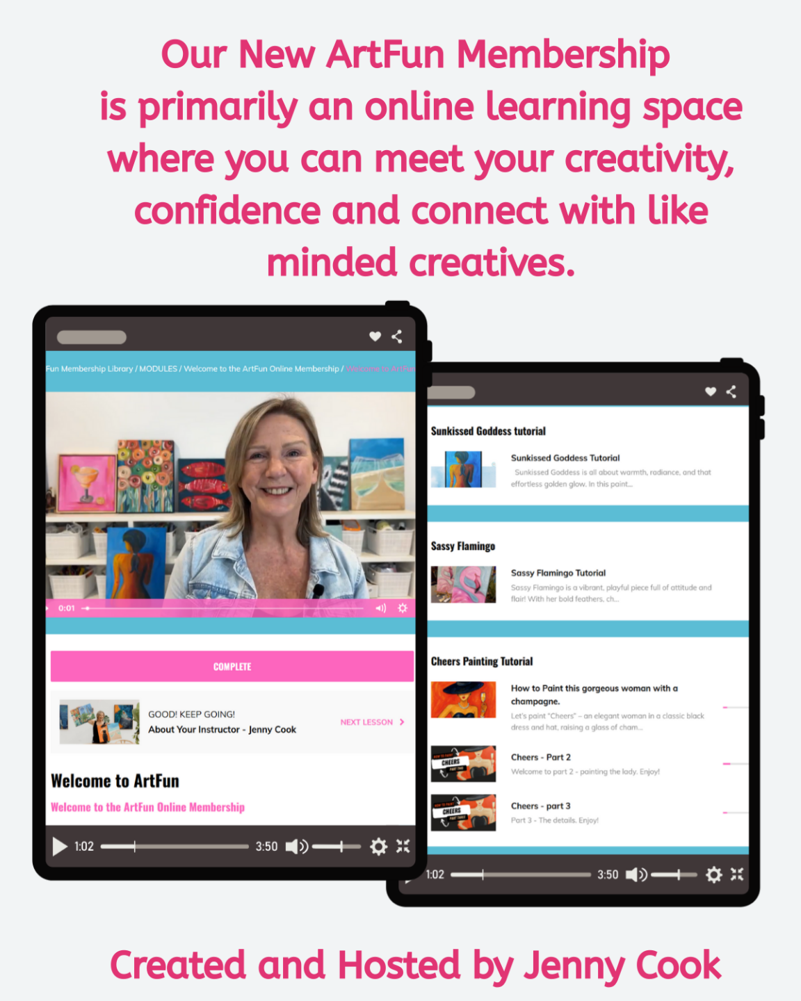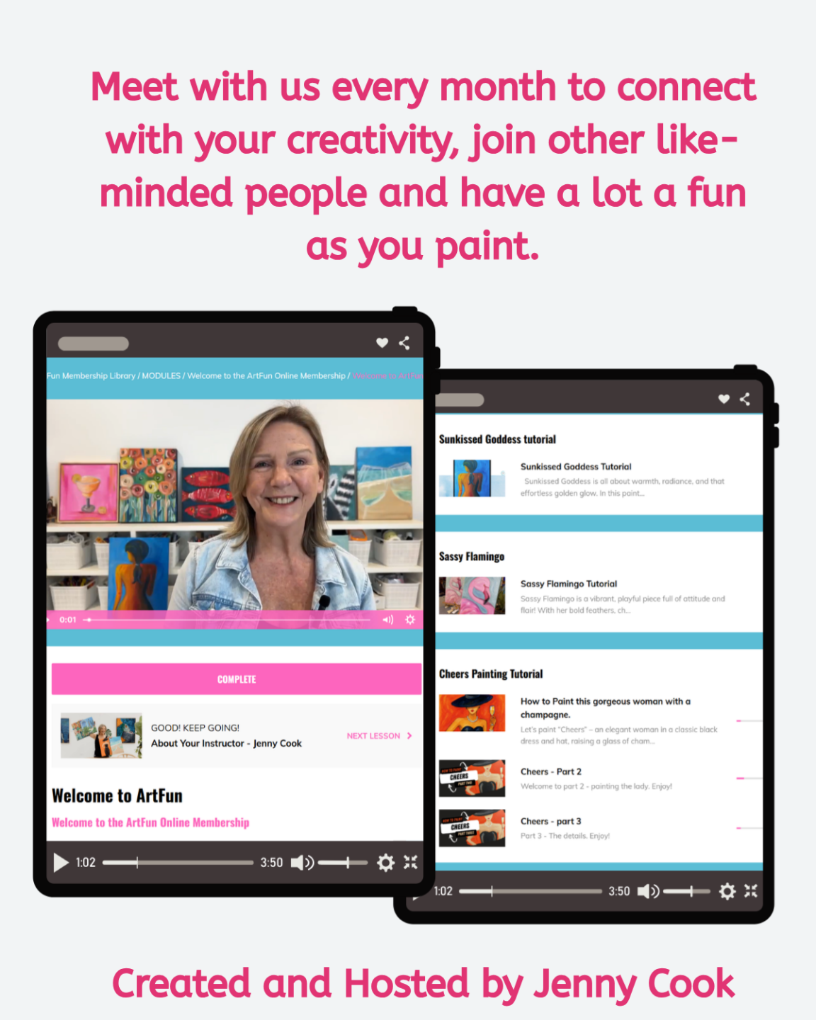 I help women reconnect with their creativity through fun and approachable art projects. I’ve taught hundreds of people who never thought they could paint, until they did! My new ArtFun Membership reflects this and is for those that want to keep improving and connecting with other likeminded souls.
