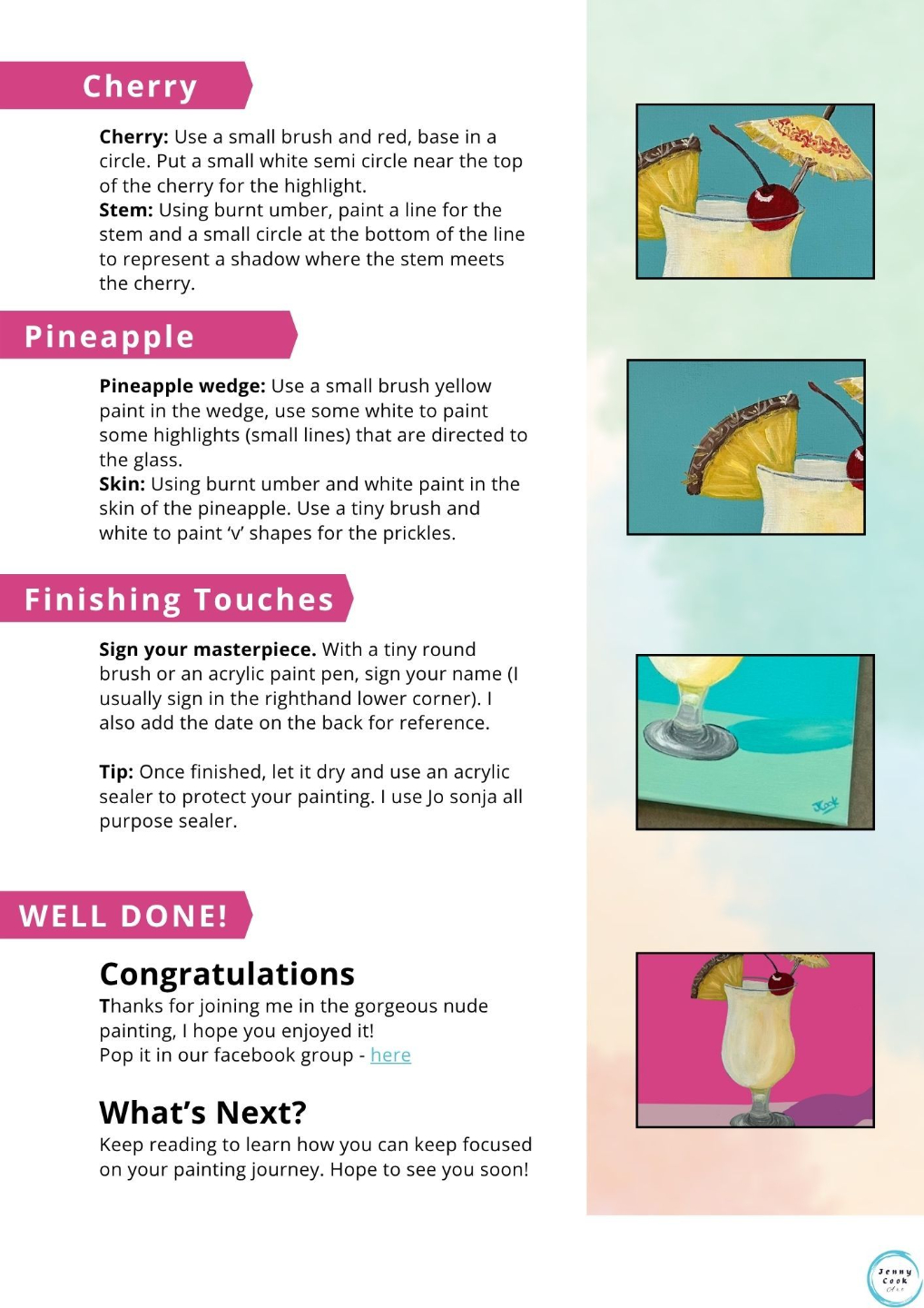 Join me on Instagram @jennycook.art and share your masterpiece with the hashtag #pinacolada, I would love to see it!